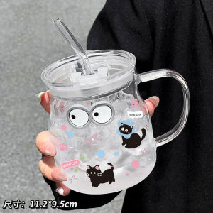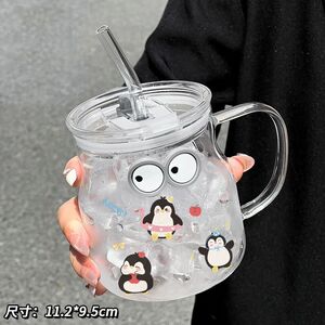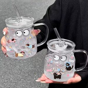 水杯女夏季高颜值玻璃杯2025新款泡果茶大容量吸管杯子可爱马克杯