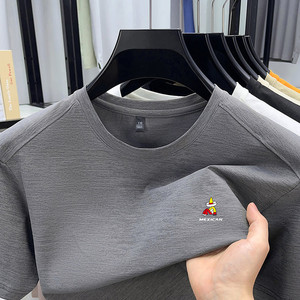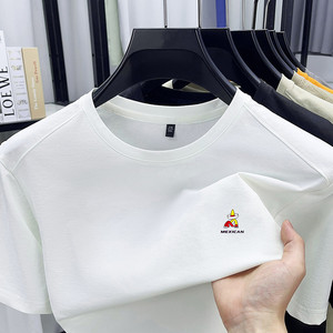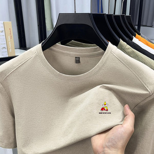 稻草人棉料短袖t恤男士夏季圆领2025新款刺绣休闲半袖上衣体恤衫