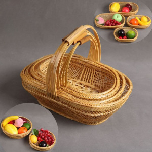 送料無料純粋な手作り竹バスケット野菜バスケット収納バスケットポータブルバスケット杭州ブルー中空フルーツ卵トゥーム