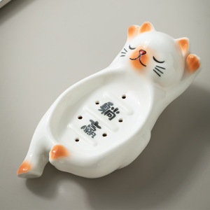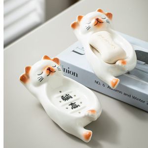 セラミックソープボックス装飾品家庭用洗面台ソープボックス装飾クリエイティブ漫画バスソープディッシュかわいい猫