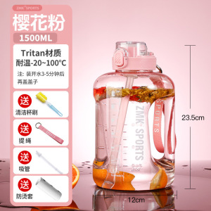 tritan材质-1500ML粉色(可装开水-送吸管+防烫套)