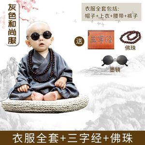灰色和尚服+背篓 送三字经+佛珠★