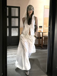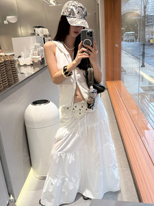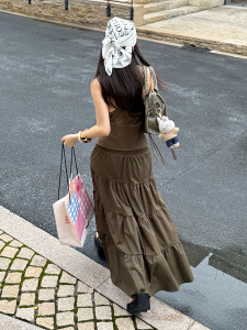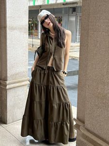 MMFISH ファッショナブルなストリート リラックスドロー ストリング マルチレイヤー ステッチ A ライン ルーズ ワークウェア スタイル フレア スカート 25Q358