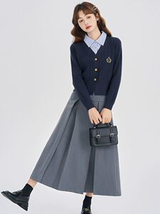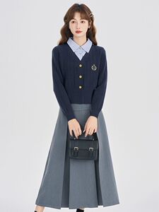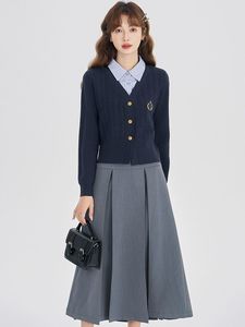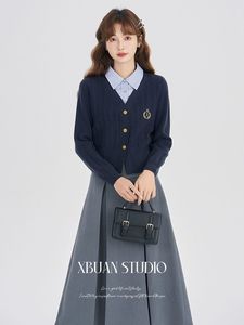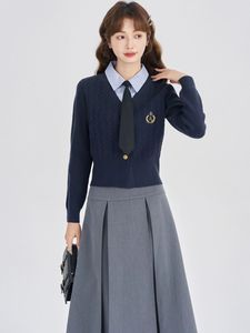 ニットウェアレディースフェイクツーピーストップ2025秋冬新作長袖カレッジスタイルハイエンドニットジャケット