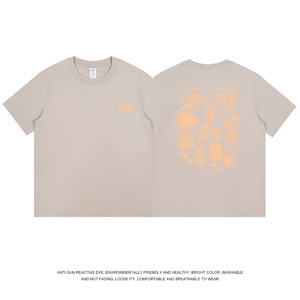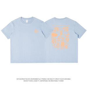 メンズ夏服230g楽しいプリントTシャツメンズトレンドラウンドネックゆったり半袖カジュアル万能インナーシャツレディースins