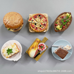 豆沙汉堡披萨提拉米苏碗仿真网红甜品磁贴3d立体创意食玩冰箱贴