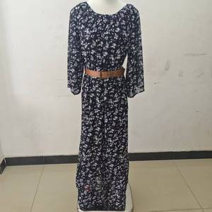 長期スポット 2025 Xia Zhuzhu 同じスタイルのフレンチレトロプリントシフォンドレス痩身気質花柄ロングスカート