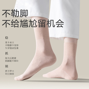 女性用ミッドカーフソックス、ゆったりと快適な無地ソックス、秋冬の女性用ソックス、脱落しない、足を締め付けない、妊婦や母親向けのゆったりソックス