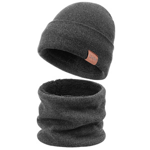 外国貿易帽子とスカーフのツーピースセット、男性と女性用、ヨーロッパとアメリカの冬の屋外暖かいプラスベルベットニット帽子防寒スーツ