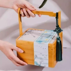 竹节提手四方空盒+棉麻包布+礼遇中秋封条一个约24x24x9cm