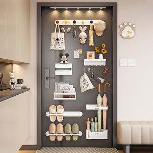 磁気収納ラック壁掛け玄関ドア後玄関収納キーフックスリッパ傘ラックマグネットセット
