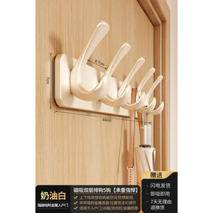 マグネット式/クリームホワイト二層フック 7本フック [上下フック収納で省スペース]_