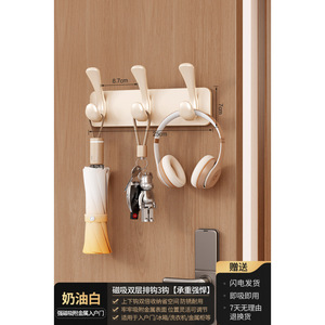 マグネット式/エレガントホワイト小型玄関ドアフックラック_