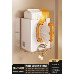 マグネット式/エレガントホワイトのウェットティッシュホルダー 長さ18cm [上部に物を置き、下部に紙を引き出すことができます]_