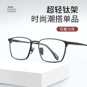 昵彩新款X1013超轻商务纯钛近视眼镜框男款一体切割厚钛板眼镜架