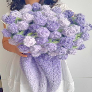 新款梦幻渐变玫瑰花毯diy手工编织毛线花束毯子材料包送女友礼物