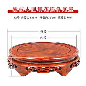 マホガニーラウンド花瓶ベース無垢材ティーポット奇妙な石香炉アンティークアートフラワー盆栽装飾品ベースホルダー