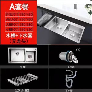 家庭用ステンレス鋼シンク 304 シンク手動ブラッシュシングルとダブル厚みのある家庭用食器洗いシンクの組み合わせ