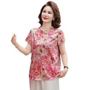 妈妈夏装新中式国风立领小衫2025新款中老年女装夏季短袖T恤上衣