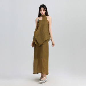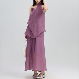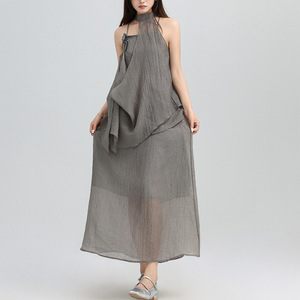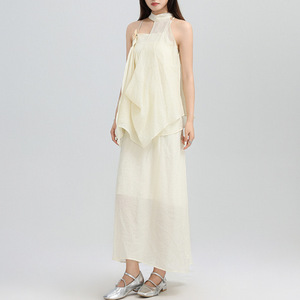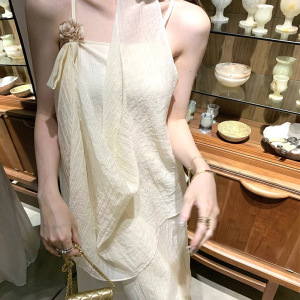 新しい中国風の禅クールホワイトホルターネックドレス夏 101.25kg ピースロングスカート美しい海辺のドレッシングガウン