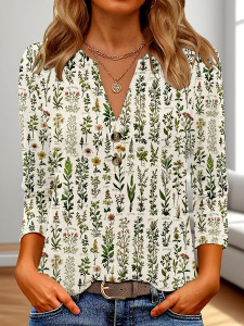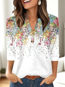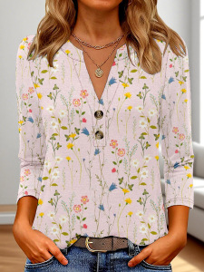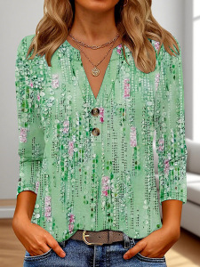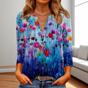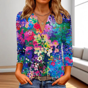 クロスボーダーヨーロッパとアメリカの新しい独立したステーションアマゾンレディース3DプリントファッションカジュアルVネック長袖Tシャツトップ