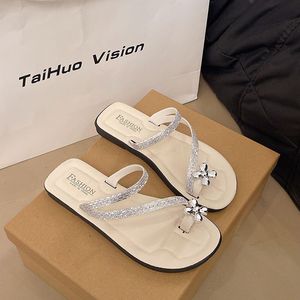 女性のためのファッショナブルなデザインのビーチサンダル 2025 夏の新しいスタイルのアウターウェア輝くダイヤモンドの妖精スタイルのスカート付き多用途サンダル