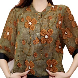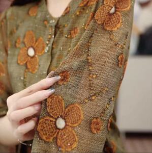 女性のためのハイエンドの七分袖シャツ 2025 夏の新しいスタイル、西洋スタイル、軽い豪華なスタイル、多用途の痩身と年齢を軽減するトップス