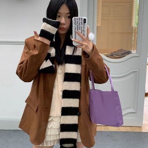 日系撞色条纹围巾女冬季韩版百搭简约复古针织围巾保暖防寒围巾潮
