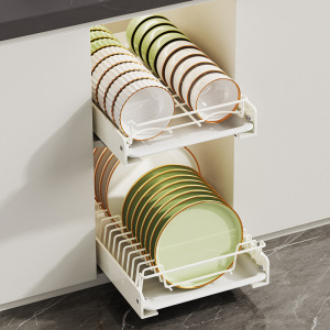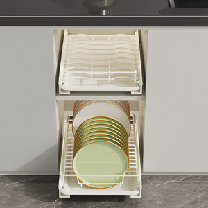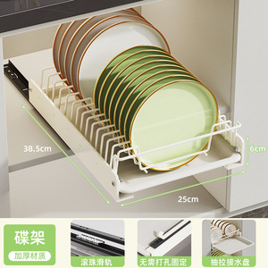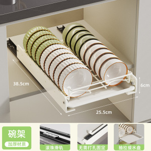 厨房碗碟整理收纳架橱柜内置抽屉式拉篮抽拉放碗架盘子沥水置物架