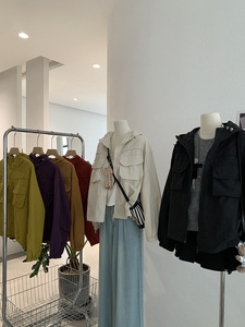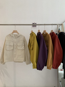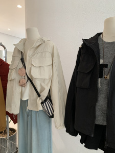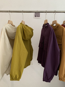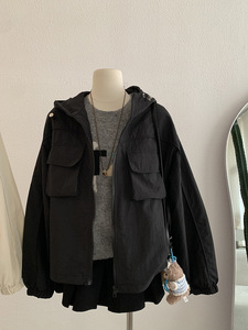 Omalai フード付きジッパーポケット無地ルーズ長袖ジャケットトップ秋の新作婦人服 4022