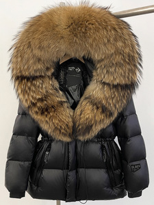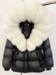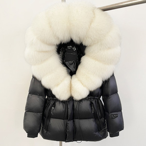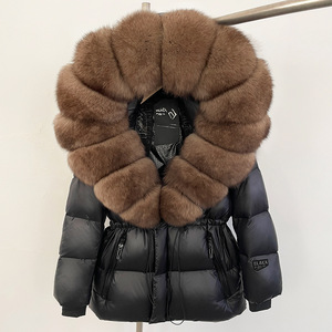 欧美高端冬季鹅绒羽绒服女皮草狐狸毛大毛领连帽羽绒服中长款外套