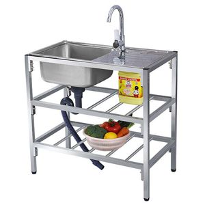キッチンステンレスシンク シンプルなフロアスタンド付き シングルシンク シンク洗面器 シンク一体型操作カウンター