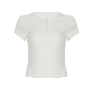 V领纯色无袖修身时尚辣妹短袖T恤休闲舒适百搭螺纹肌理露脐上衣