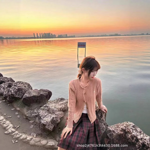 韓国ラウンドネック刺繍ツイストニットカーディガン女性のための 2025 春と秋の新しいカジュアル多用途ソフトワックスセータージャケットトレンディ