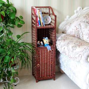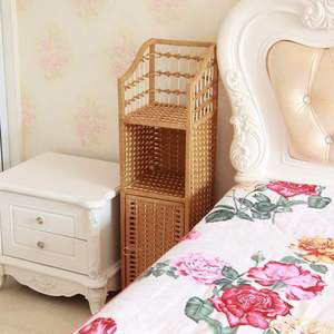 狭いキャビネット ベッドサイドキャビネット 籐編み無垢材隙間収納キャビネット シンプルでクリエイティブな収納キャビネット コーナー収納ラック コーナーキャビネット