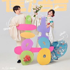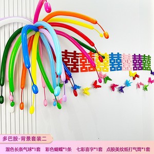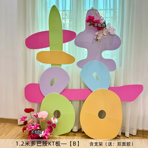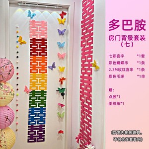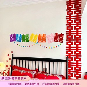 婚房布置多巴胺kt板彩色喜字婚礼彩虹奶油背景墙装扮用多巴胺纱幔