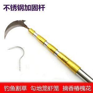 万能多节超轻不锈钢万能伸缩杆功能高空抄网摘果香椿槐花镰刀加厚