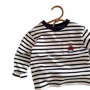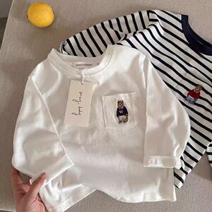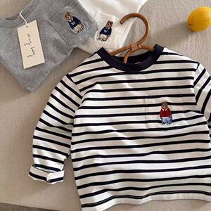 子供のストライプ Tシャツ長袖 2025 春と秋の新しいスタイルの男の子と女の子のトップストレンディなベビー漫画ボトムシャツ女性のファッショナブルなスタイル