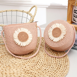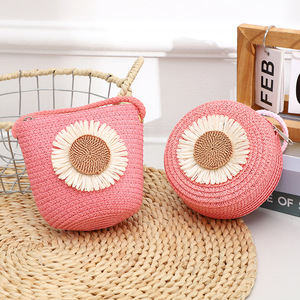 儿童旅行可爱手提草编包 创意太阳花手工编织包 休闲女士斜挎包包