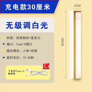 led人体感应灯条磁吸灯橱柜灯衣柜酒柜鞋柜usb感应小夜灯长条充电