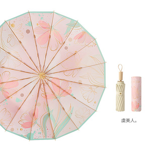 Fino 16本骨カラーグルーサン傘 レディース 紫外線防止折りたたみ傘 大型ダブル晴雨兼用日傘
