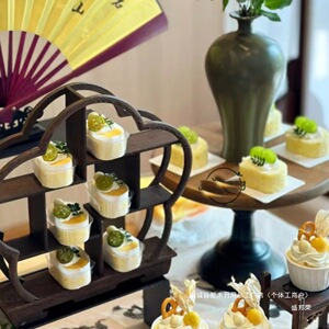 中式甜品台摆件展示架订婚婚礼摆台托盘博古架婚庆装饰茶歇蛋