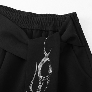 火焰字母斑驳印花弯刀休闲长裤男款vibe潮牌腰头系带阔腿运动卫裤