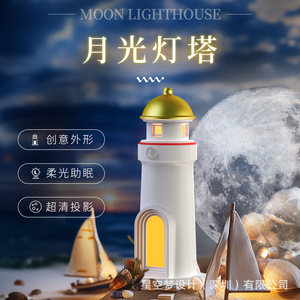 国境を越えた月光灯台の雰囲気のあるダイナミックな星空プロジェクター、クリエイティブなギフト装飾品、人感センサー付き睡眠用月球ランプ
