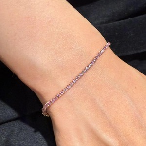 国境を越えた人気のミニマリストの非常に細かいピンクのダイヤモンドブレスレット、超キラキラ月光ピンク、物理的に巨大なキラキラ、ニッチなライトラグジュアリー、ハイエンドの女性