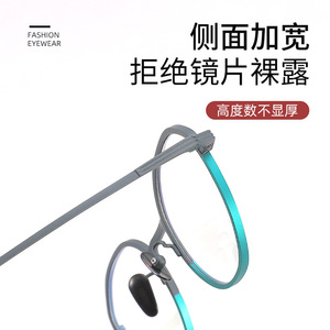 昵彩新款X1012双色IP电镀圆框女超轻纯钛镜架可配度数男眼镜框