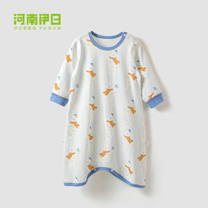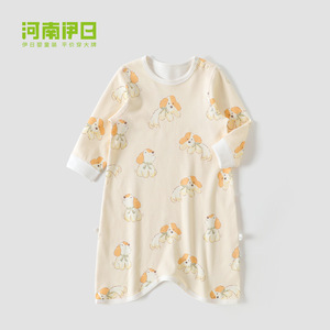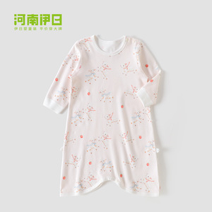 伊日婴儿秋季纯棉连体睡袍男女宝宝衣服新生儿全棉婴儿服秋装