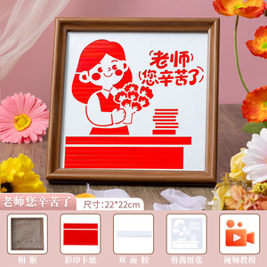 教师节diy手工礼物儿童手工仿制竹编相框画教师节相框摆件礼品