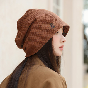 韓国風秋冬女性用ウール帽子、アメリカンカジュアル万能防寒帽子、両面着用可能ニット帽、頭囲が大きい、顔が小さく見える