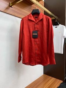 zeg 杰尼ez男士亚亚麻纤维混纺商务休闲长袖衬衫线条流畅吸湿排lp